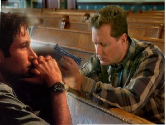 MULDER (SLUMPS AGAINST A DESK): Oh, God.